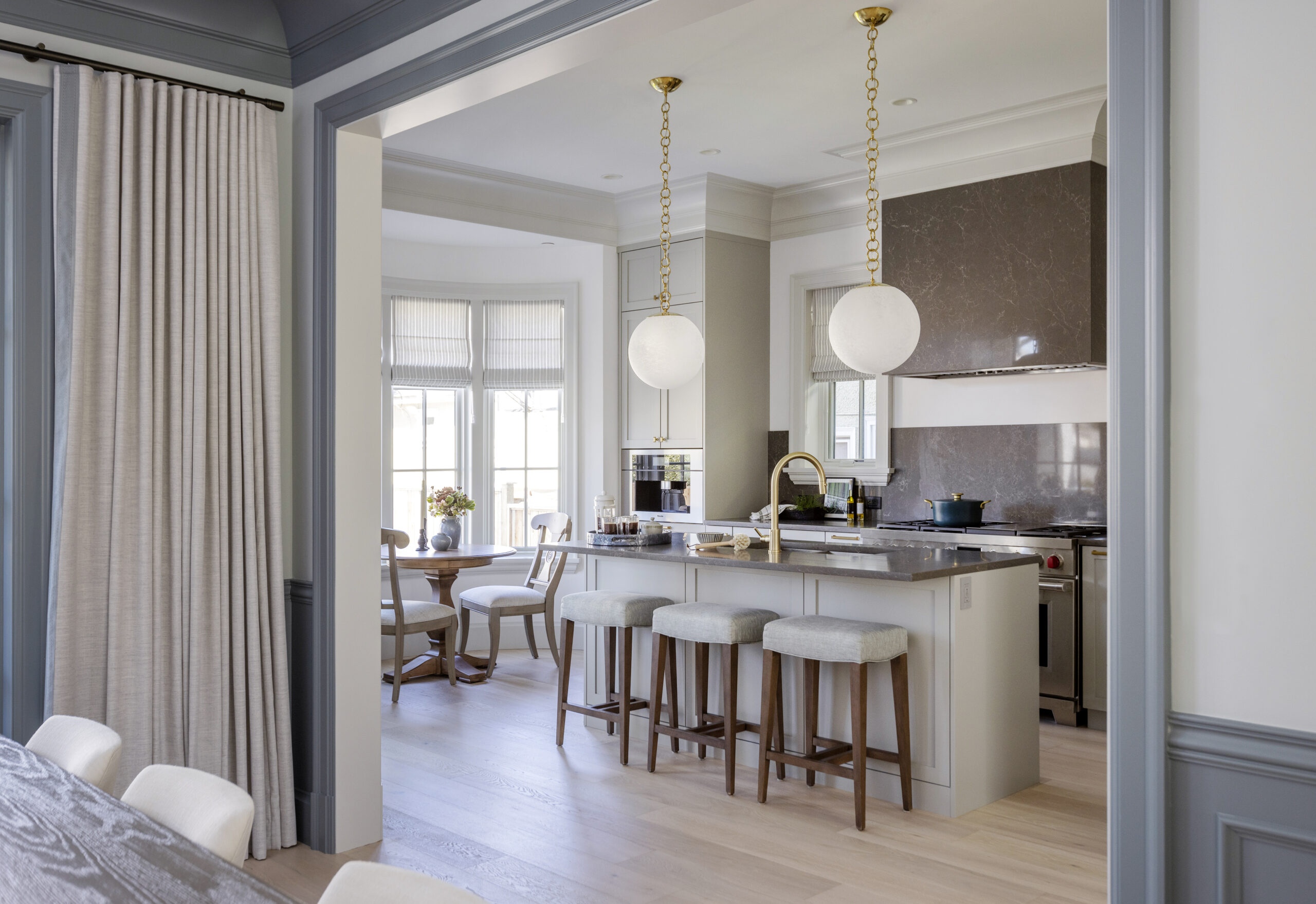 Formwerks Interiors brought soft palettes into each room to complement the natural foliage of the mature trees surrounding this West Point Grey home.