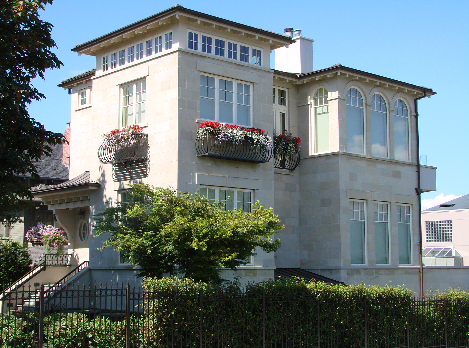 Capturing the soul of coast side living, this stunning residence was the result of a design vision to fuse Amalfi-inspired details with Westcoast elegance. The natural stone façade, Juliet balcony-inspired planter boxes, and arched windows make this home a striking addition to Kitsilano’s most esteemed street. The windows capture stunning views of glittery downtown and look closely at its no nonsense garden for surprises.