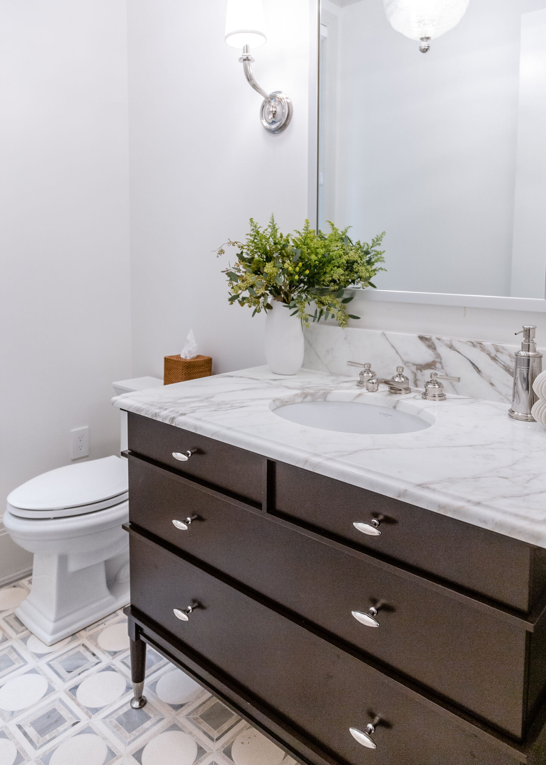 The powder room and bathrooms provided the opportunity to play with pattern and colour in an elegant way.