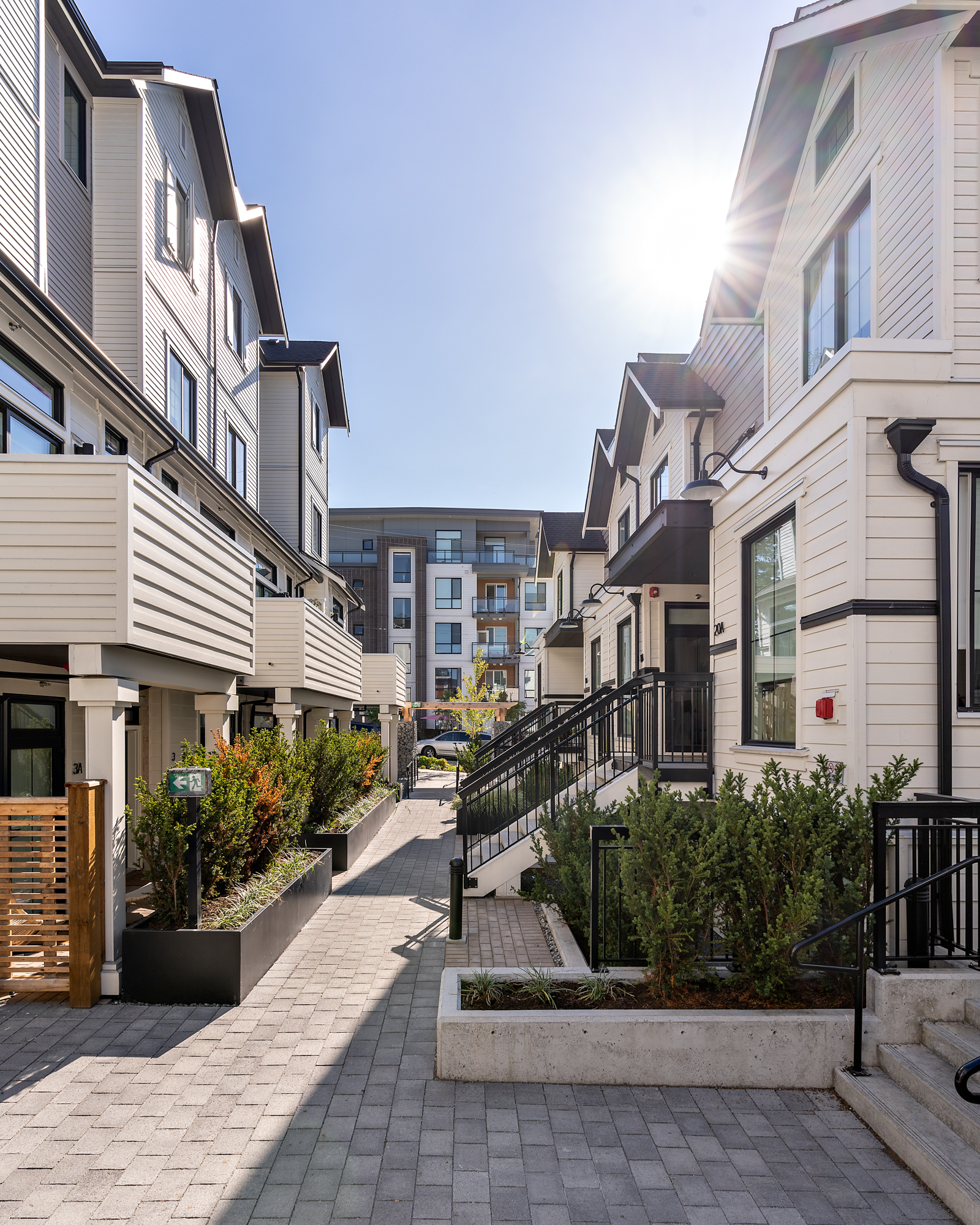 A community of 24 residences introduced a variety of housing options for families to the Moodyville neighbourhood in North Vancouver, with three-bedroom ground-oriented flats and two- to three-bedroom townhouse units.