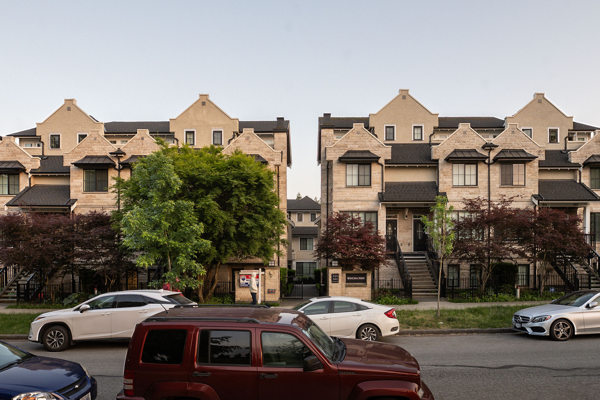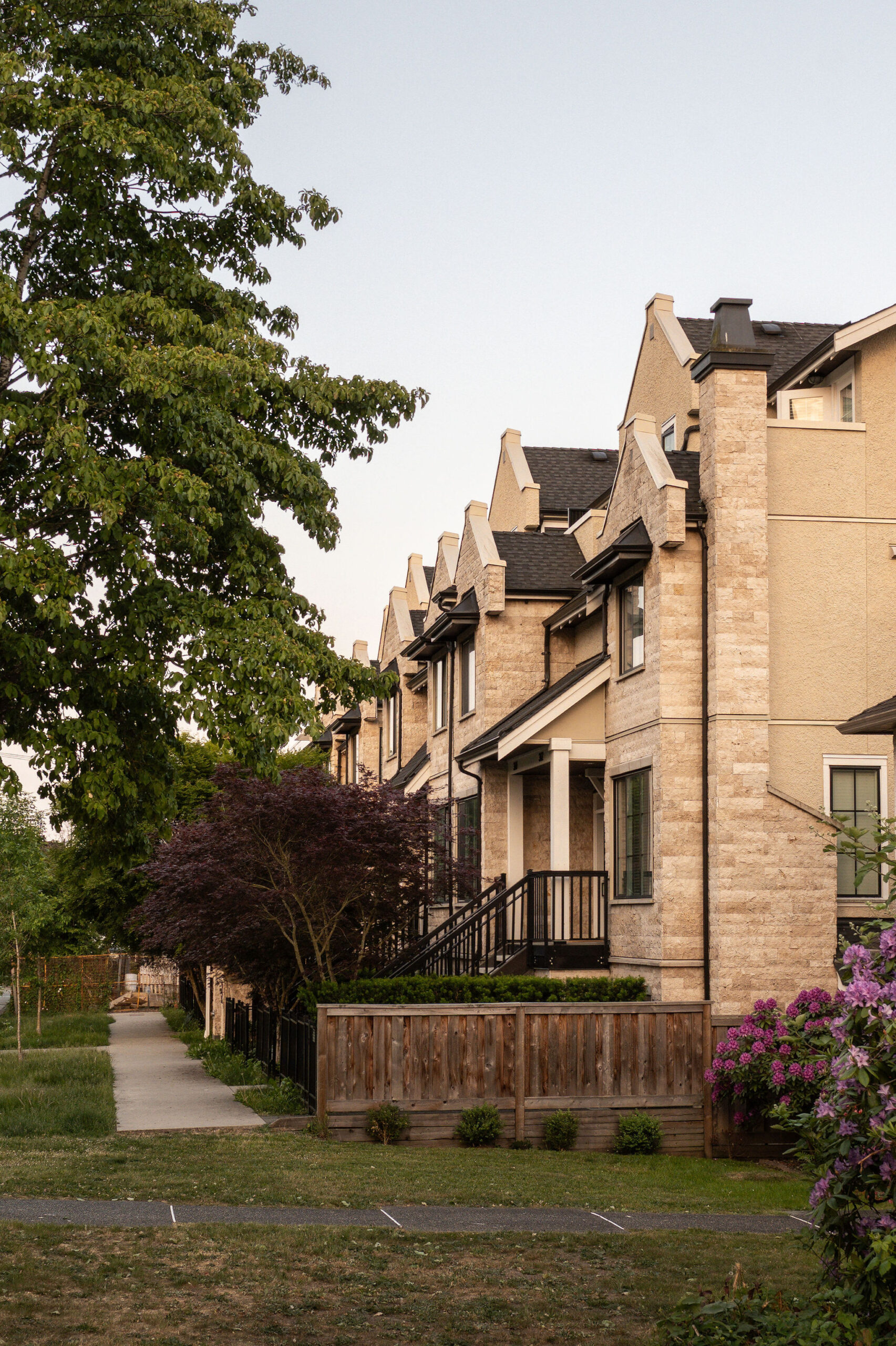 Inspired by the elegance of French Chateaus, the real stone façade, tall chimneys with decorative caps, Flemish gables and metal roof awnings make these homes a bold addition to the Marpole neighborhood.