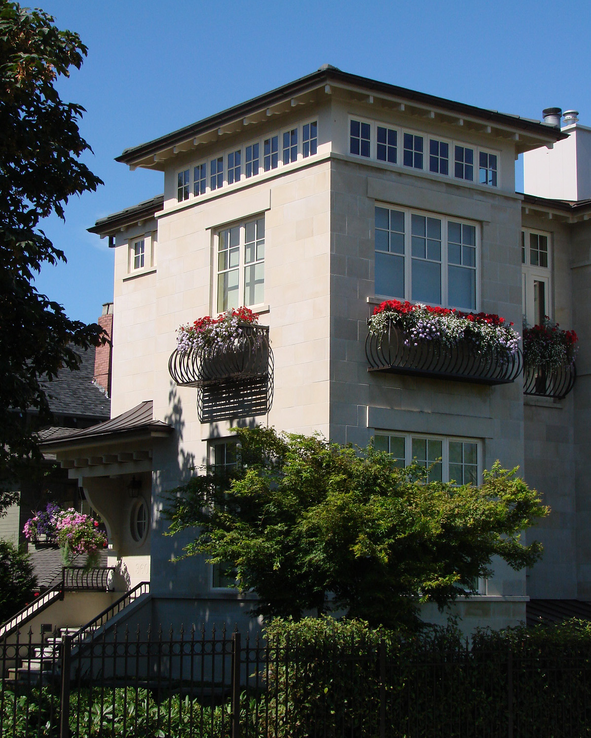 Capturing the soul of coast side living, this stunning residence was the result of a design vision to fuse Amalfi-inspired details with Westcoast elegance. The natural stone façade, Juliet balcony-inspired planter boxes, and arched windows make this home a striking addition to Kitsilano’s most esteemed street. The windows capture stunning views of glittery downtown and look closely at its no nonsense garden for surprises.