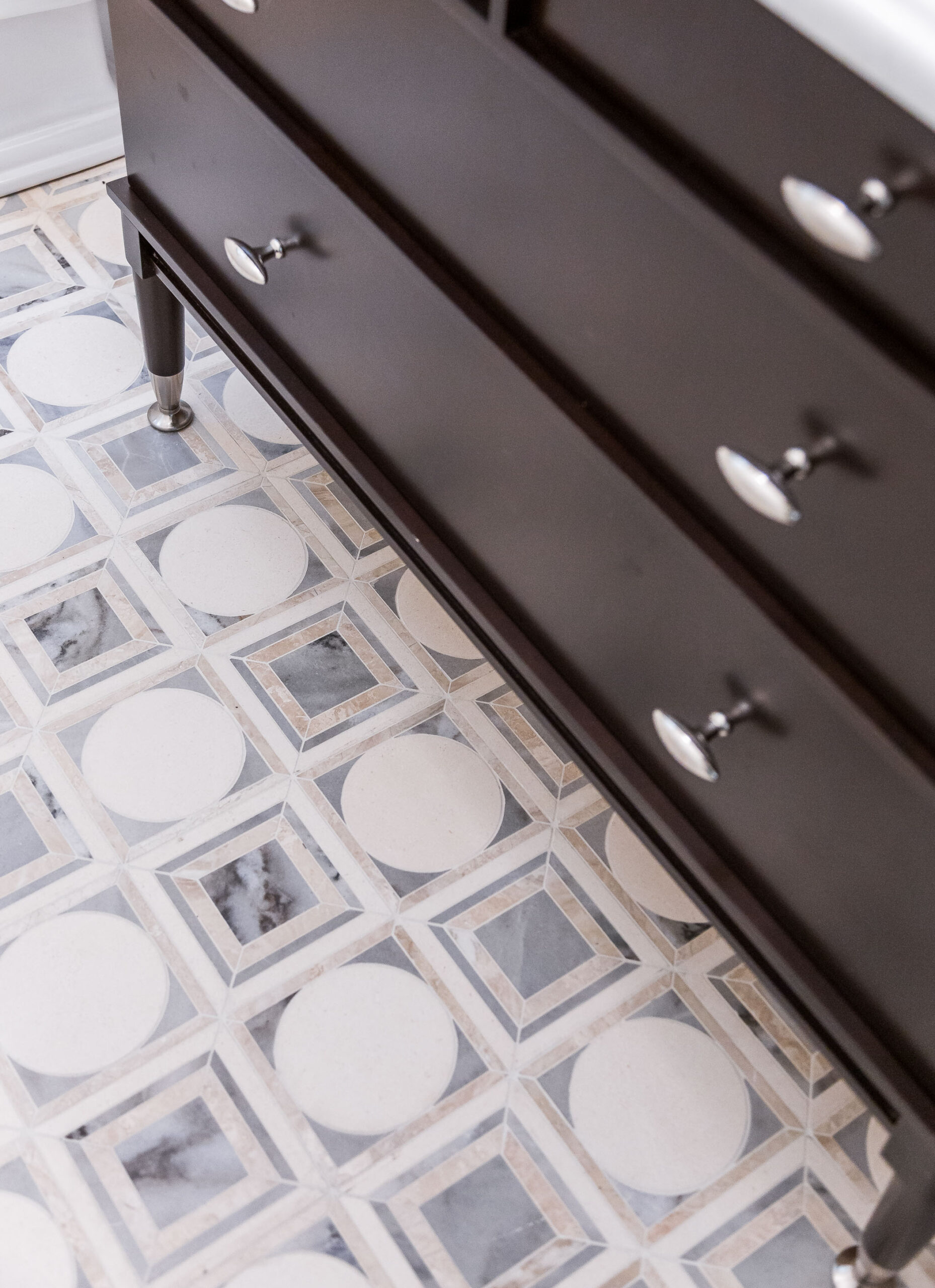 The powder room and bathrooms provided the opportunity to play with pattern and colour in an elegant way.