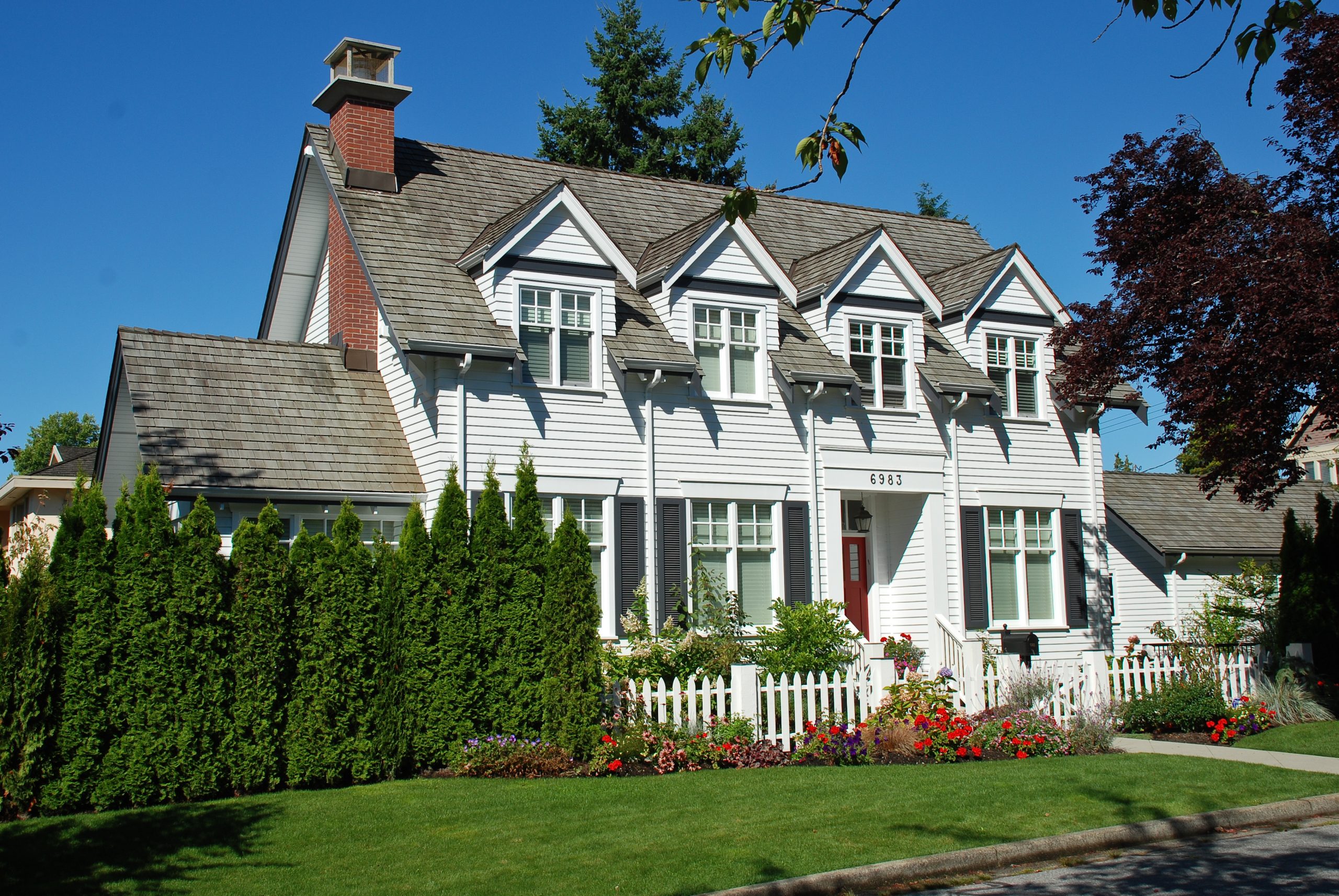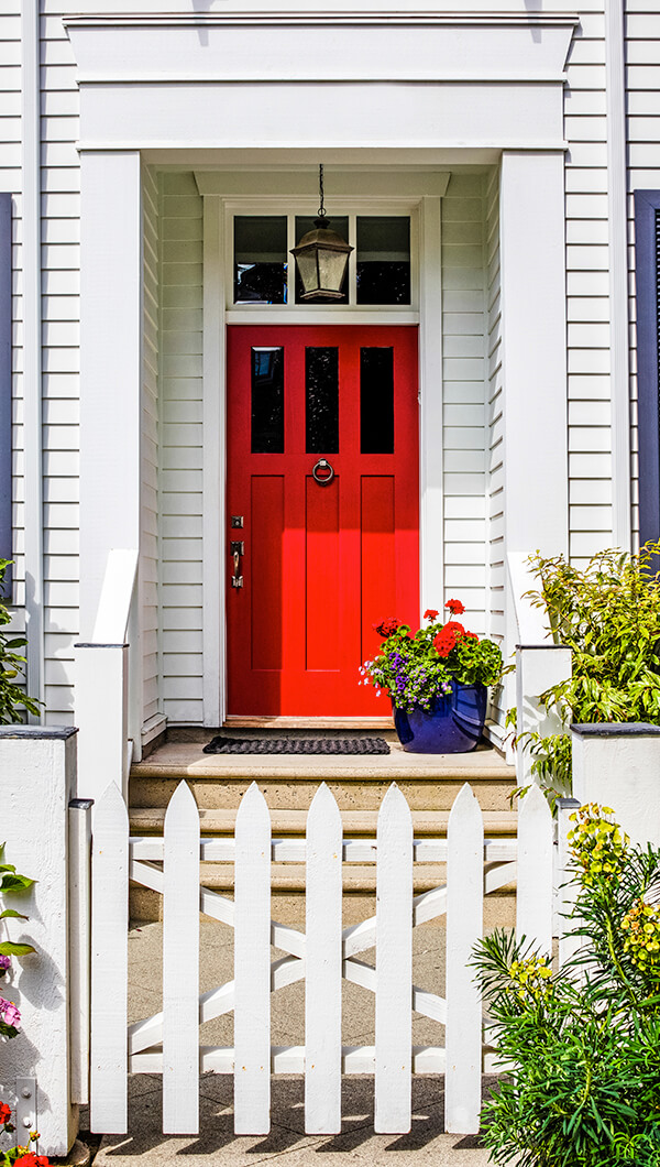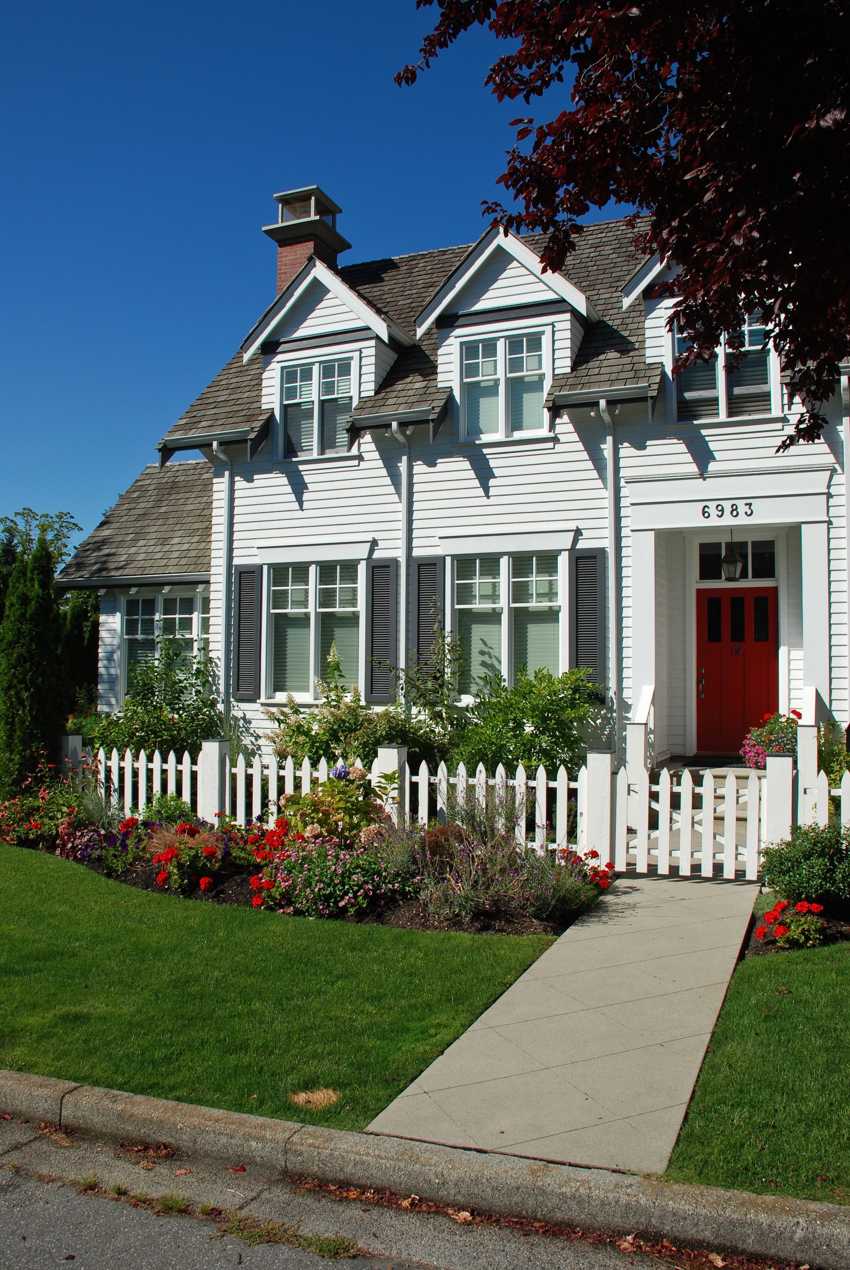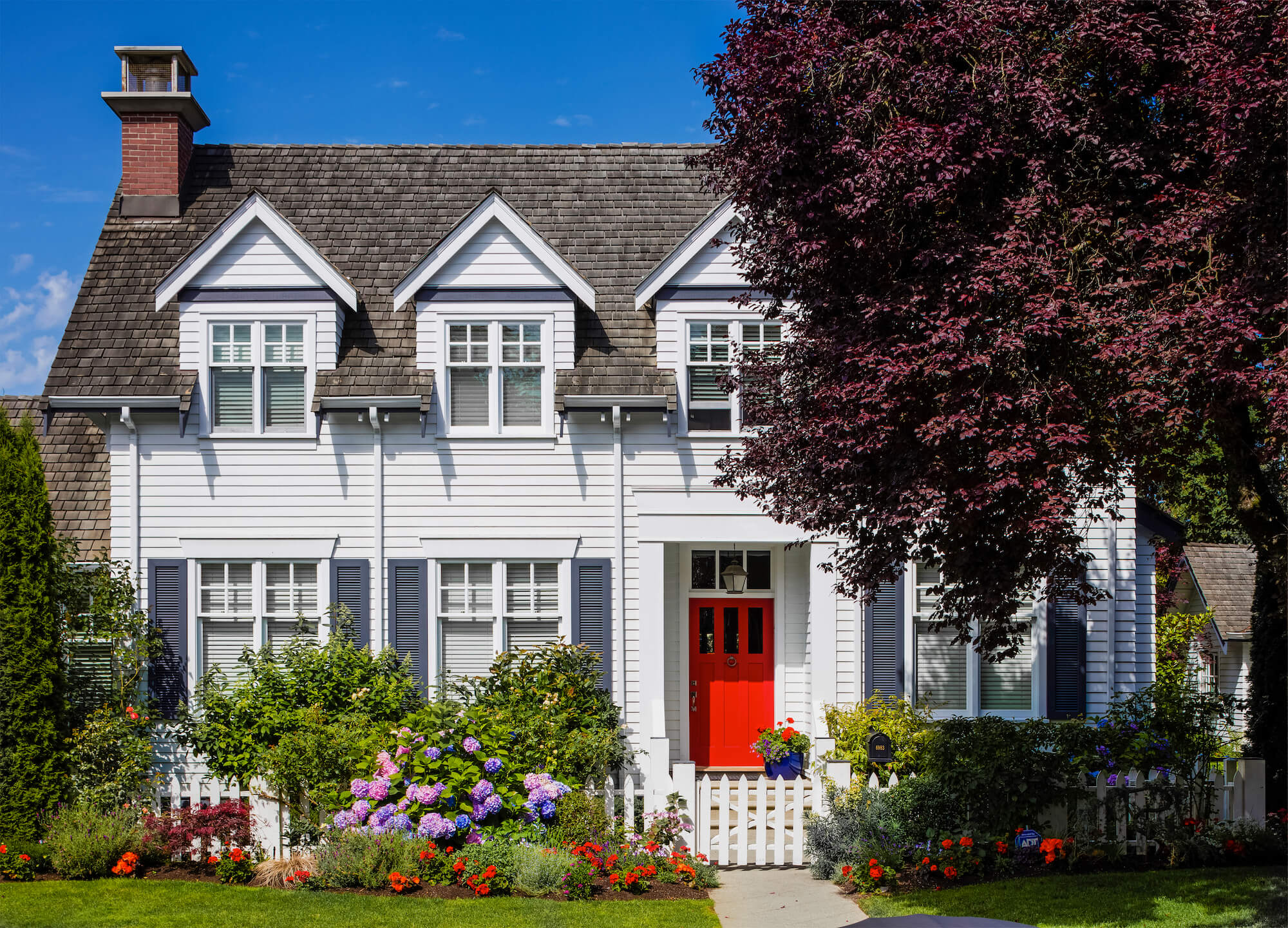 Channeling breezy seaside architecture from Nantucket or the Hamptons, this quaint residence makes a statement with its vibrant red entry door. Expect June to summon Ward to find a beaver hiding in the garden.