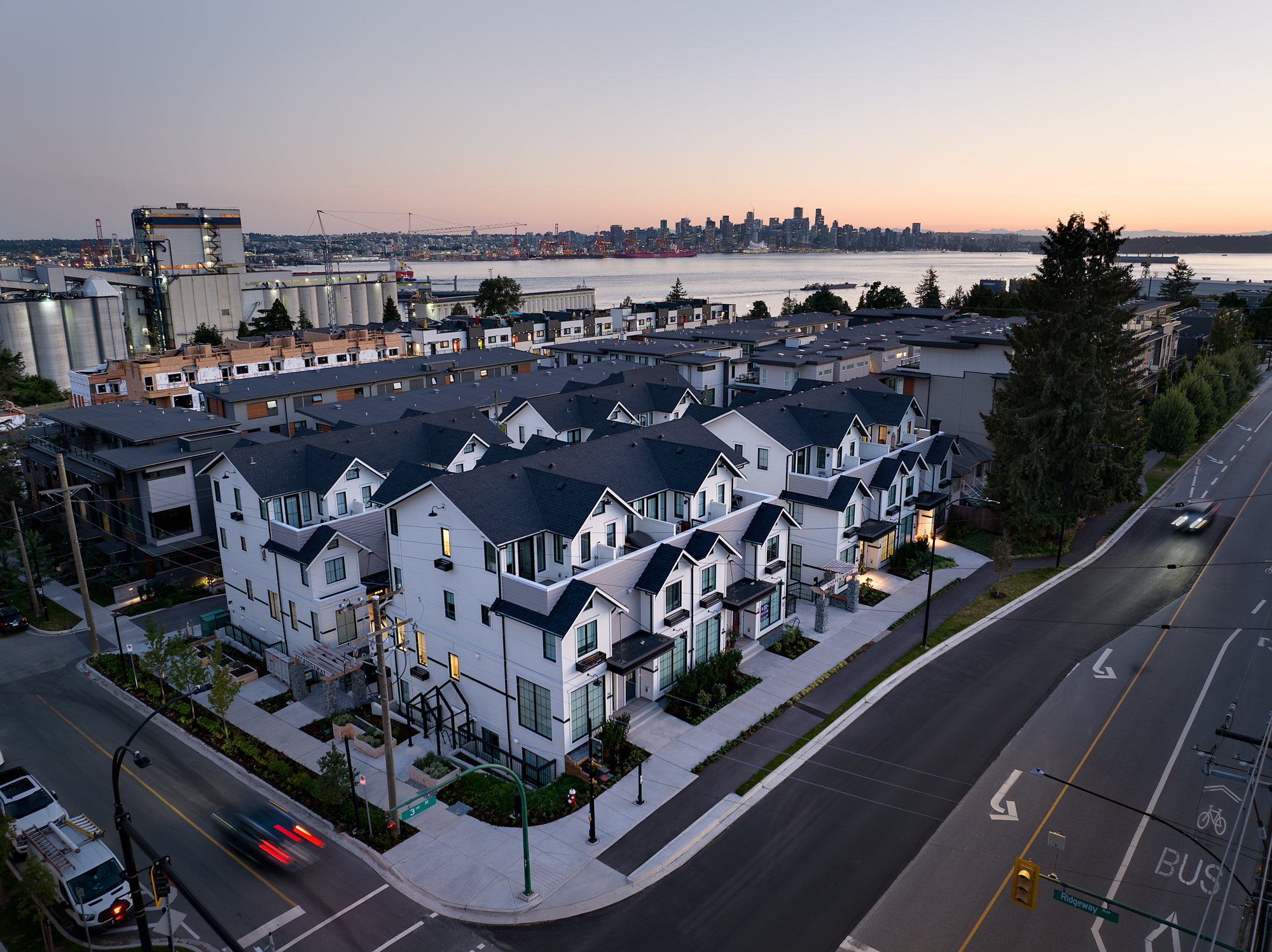 A community of 24 residences introduced a variety of housing options for families to the Moodyville neighbourhood in North Vancouver, with three-bedroom ground-oriented flats and two- to three-bedroom townhouse units.