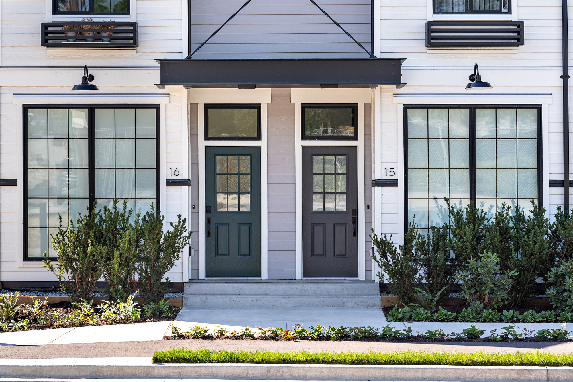 Materials include divided windows, wrought iron railings and canopies along with architectural details such as tension cables, exposed gutters and goose neck exterior lights pay tribute to Moodyville’s industrial past.